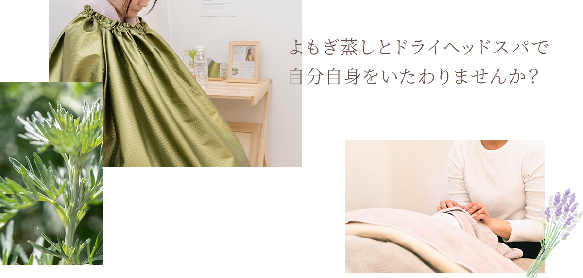 よもぎ蒸し・ドライヘッドスパ・ネイルを提供しております、