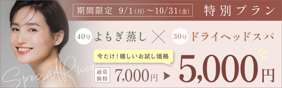 よもぎ蒸し・ドライヘッドスパ・ネイルを提供しております、