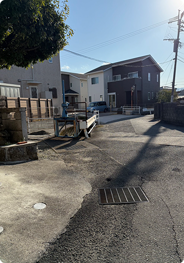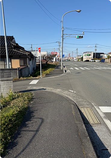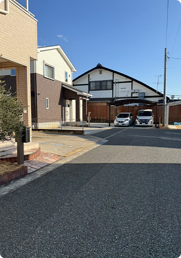 お車の方は、左奥の住宅の空いたスペースに駐車してください。